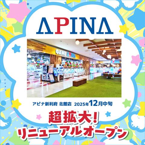 いかがお過ごしですか、nittaです。 イオンモール新利府北館2階のアミューズメント施設『APINA』が、2025年12月中旬を目処に増床リニューアルを予定し…