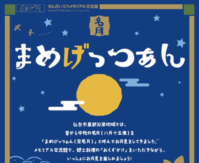 いかがお過ごしですか、nittaです。 仙台市若林区・地下鉄東西線荒井駅にある『せんだい3.11メモリアル交流館』屋上庭園で、中秋の名月のお月見イベント『まめ…