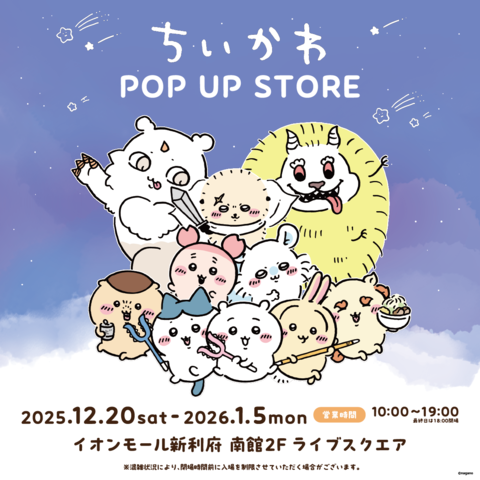 いかがお過ごしですか、nittaです。イオンモール新利府南館2階ライブスクエアで、『ちいかわ POP UP STORE』を、2025年12月20日(土)から2…