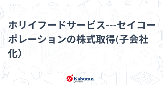 ホリイフードサービス<3077>は26日、セイコーポレーションの全株式を取得し、子会社化することを決議したと発表した。取得の目的は、ホリイフードサービスが展開…