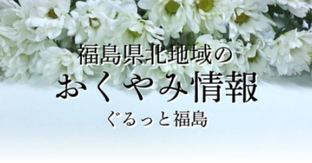 福島市のお悔やみ(おくやみ)情報です。福島県北地域(福島市・二本松市・伊達市)のおくやみ情報とお葬式や告別式の日取りや斎場などの詳細とお悔みに関するマナーなど…