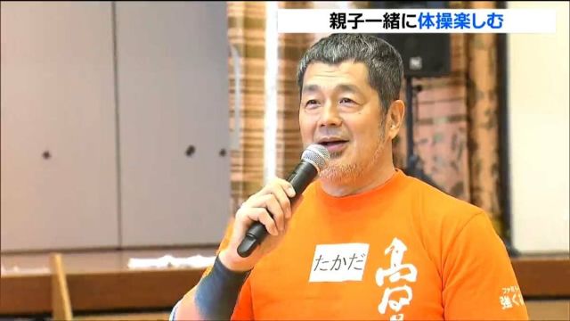 元格闘家の髙田延彦さんによる体操教室が16日、宮城県大崎市内で開かれ、参加した親子が一緒に体を動かしながら楽しみました。大崎市鹿島台で開かれた体操教室には、市…