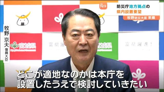10月発足した高市内閣の牧野京夫復興大臣が、10月30日の就任後初めて宮城県庁を訪れました。村井知事は牧野大臣に対し、防災庁の地域拠点を県内に設置するよう要望…