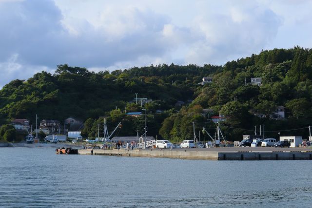 [01] 寺間漁港の風景 [02] 寺間漁港の風景 [03] 寺間漁港の堤防から見た寺間の集落 [04] 島の漁港にはこのような駐車していい場所があり…