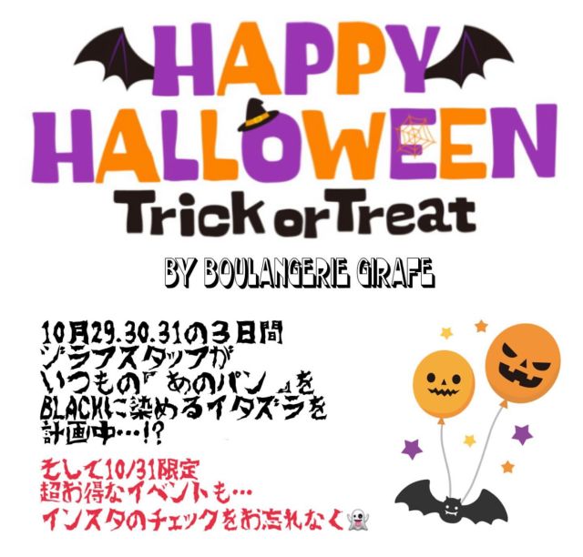 いかがお過ごしですか、nittaです。 JR仙台駅西口のブーランジェリー『ジラフルポ 仙台中央店』などの一部系列店★で、ハロウィンにちなみ、いろいろなBLAC…