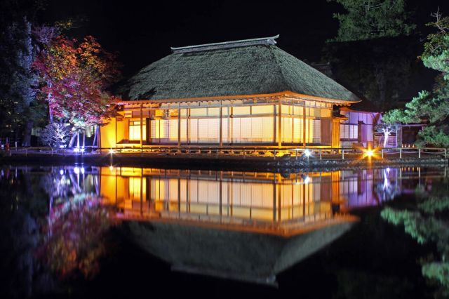 大崎市岩出山の国指定史跡・名勝「旧有備館および庭園」で、秋のライトアップが始まった。闇夜に主屋(御改所)と紅葉を照らし出す幻想的な光景が、訪れた人たちの目を引…