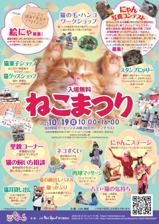 いかがお過ごしですか、nittaです。 JR仙台駅西口のイービーンズ4階杜のガーデンテラスで、『ねこまつり』を2025年10月19日(日)に開催するみたいです…