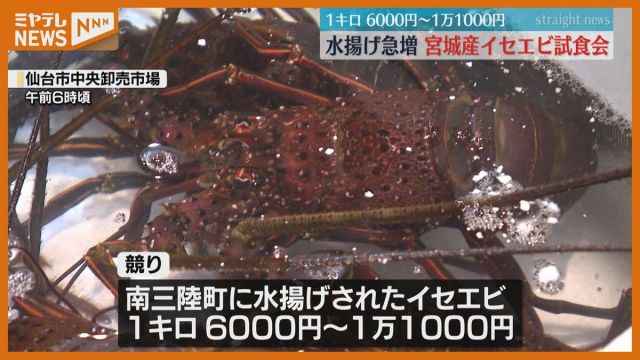 仙台市中央卸売市場では宮城県内で水揚げが急増しているイセエビの試食会が行われました。