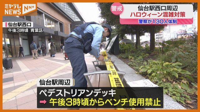ハロウィーン当日の31日、仙台駅西口では混雑に備え 警察が周辺のベンチを使用禁止にするなど、130人体制で警戒にあたっています。 警察と仙台市では、ハロウィ…