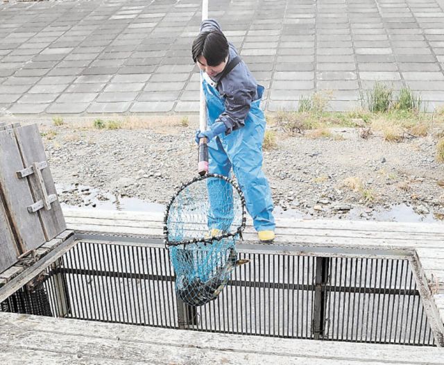 南三陸町の八幡川で31日、海から遡上(そじょう)する秋サケの採捕が始まった。初日は東日本大震災後以降で最も少なかった昨年と同数の4匹。卵の状態が悪く授精作業…