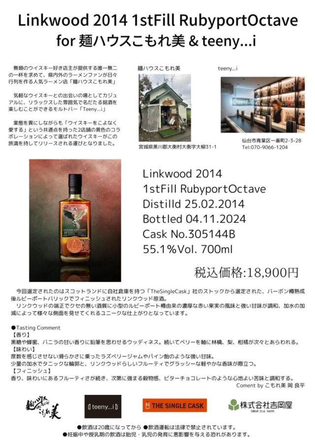 いかがお過ごしですか、nittaです。無類のウイスキー好きの2店「teeny…i」(モルトバー、仙台市青葉区一番町)と「麺ハウスこもれ美」(ラーメン店、黒川郡…