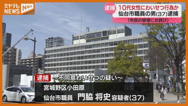面識のない10代の女性に対し路上で身体を触るなどわいせつな行為をしたとして仙台市の職員の男が逮捕されました。