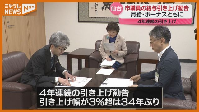 仙台市の人事委員会は、2025年度の市職員の給与について月給・ボーナスともに引き上げるよう勧告しました。引き上げ勧告は4年連続です。