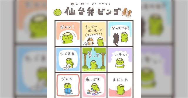 昨日の日記で結構「歩って(あるって)」にびっくりされてたので個人的によく使う仙台弁ビンゴを作りました