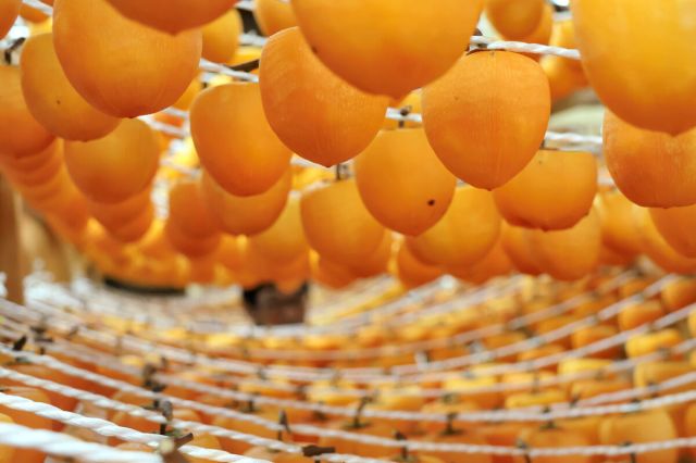 宮城県丸森町耕野地区で、特産の干し柿「ころ柿」作りが本格化している。暖かなオレンジ色の実は、時間をかけて甘みを増していく。 農産物直売所「いなか道の駅やしま…