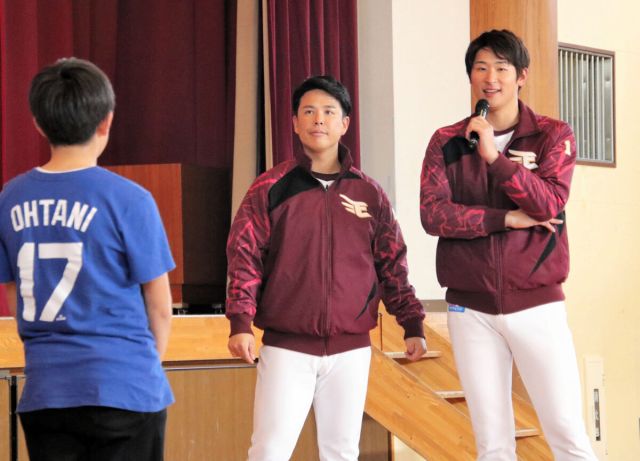 プロ野球東北楽天の藤井聖投手と内星龍投手が、球団の地域貢献活動として仙台市東長町小を訪問し、6年生145人と触れ合った。 2人は20日に同校を訪れ、キャッチ…