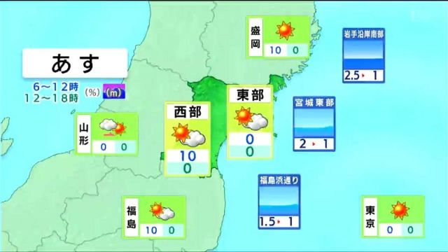 県内全域に強風、乾燥、霜の各注意報が出ています。11日夜の天気です。概ね晴れますが、北部の山沿いではにわか雨があり、標高の高い地域では雪が混じるでしょう。12…