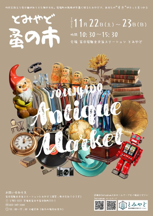 富谷宿観光交流ステーション「とみやど」で、11月にちょっと面白そうなイベントがあるみたいです。名前はずばり、「とみやど蚤の市」。宿場町のまちなみが残ってて雰囲…