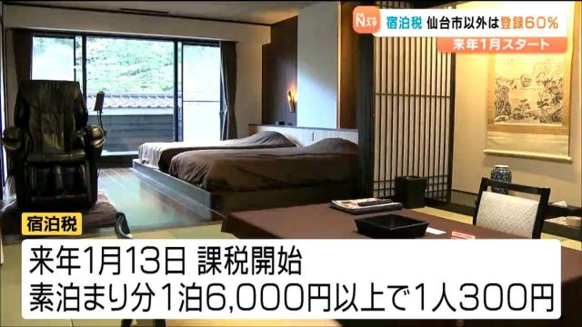 宮城県内で2026年1月から課税が始まる宿泊税をめぐり、県への登録手続きを終えた仙台市以外の宿泊施設が、約60%となっていることが分かりました。 これは11…