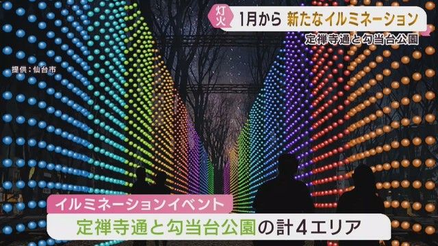 仙台市青葉区の定禅寺通などで、1月から新しいイルミネーションイベントが行われることになりました。