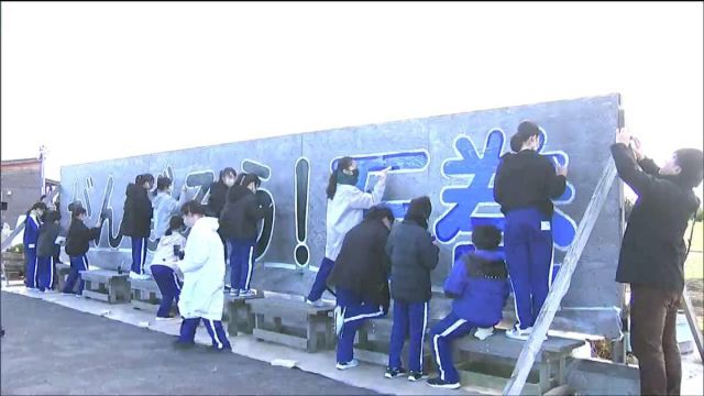 東日本大震災の被災者を励ましてきた「がんばろう!石巻」の看板の修繕作業が、地元の中学生の協力で行われました。作業には石巻中学校の生徒15人が参加し、ペンキが剥…