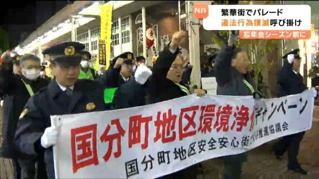 忘年会シーズンを前に3日夜、仙台市内の繁華街で、迷惑な客引き行為の防止や飲酒運転の根絶などを訴えるパレードが行われました。仙台市青葉区国分町などの繁華街で行わ…