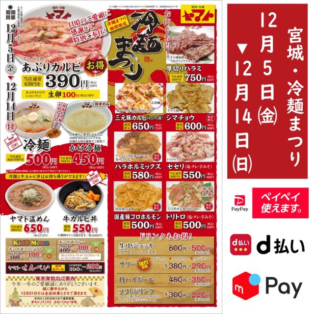 いかがお過ごしですか、nittaです。宮城県下の『焼肉冷麺ヤマト』各店で、『冷麺まつり』を、2025年12月5日(金)から14日(日)までの10日間開催するみ…