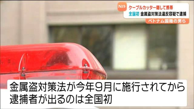 金属ケーブルを切断するケーブルカッターを正当な理由なく隠し持っていたとして、ベトナム国籍の男3人が、12月4日に金属盗対策法違反の疑いで逮捕されました。202…