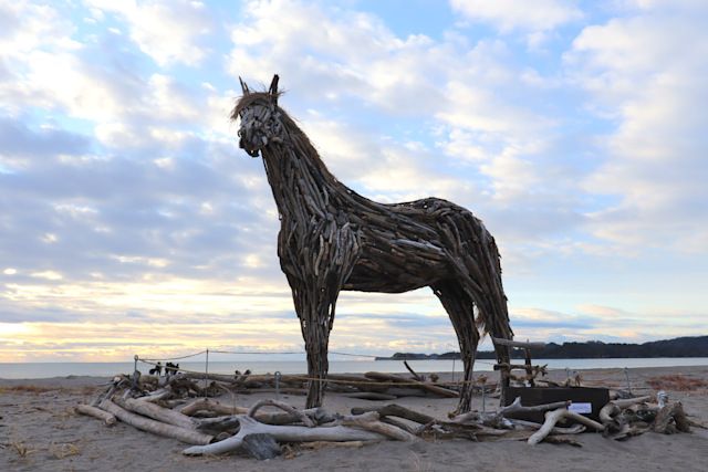 元朝の野蒜海岸に行ったら馬のオブジェがありました。保坂俊彦さんの作品でした。