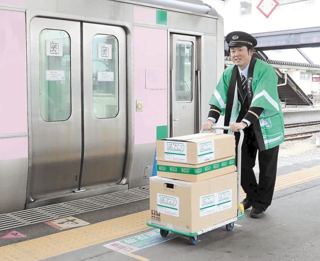JR仙石東北ラインの列車に出来たての和菓子を載せ、宮城県石巻市の石巻駅から仙台駅まで運ぶ取り組みが19日、行われた。列車の定時性、速達性と大規模駅の販売会場…