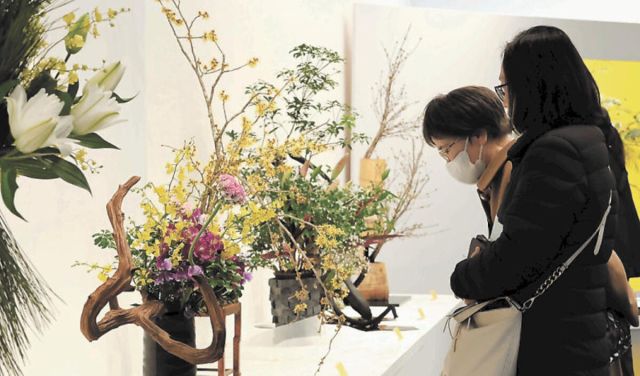県華道連盟主催の「春のいけばな展」が21日、仙台市青葉区のせんだいメディアテークで始まった。春の訪れを感じさせる黄色やピンクの花が会場を彩っている。24日ま…