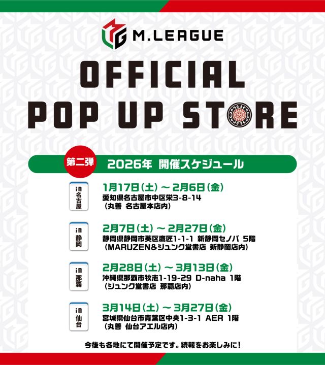 M.LEAGUE OFFICIAL SHOP(Mリーグオフィシャルショップ)POP UP STORE、2025