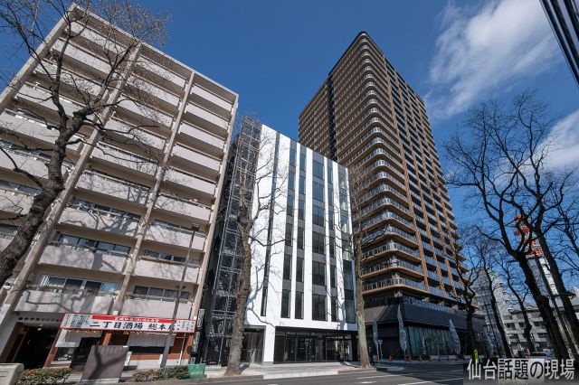 完成間近のパークホームズ仙台中央の西側に新しいテナントビルが完成しました。