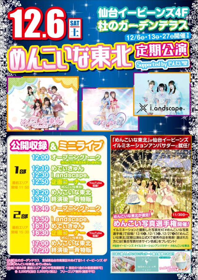 いかがお過ごしですか、nittaです。JR仙台駅西口のイービーンズで、『めんこいな東北定期公演 Supported by せんだい堂』を、2025年12月6日…