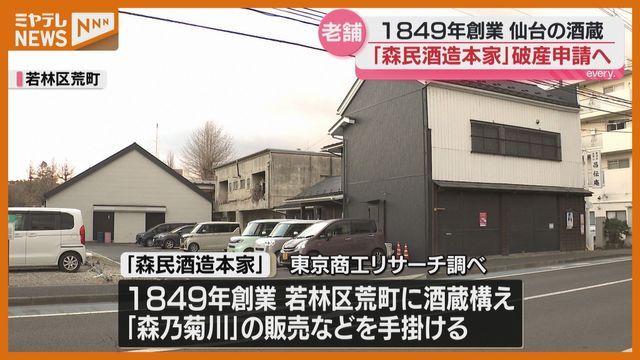 江戸時代に創業し200年近い歴史を持つ仙台市若林区の酒蔵、森民酒造本家が業績悪化を受け自己破産申請の準備に入りました。