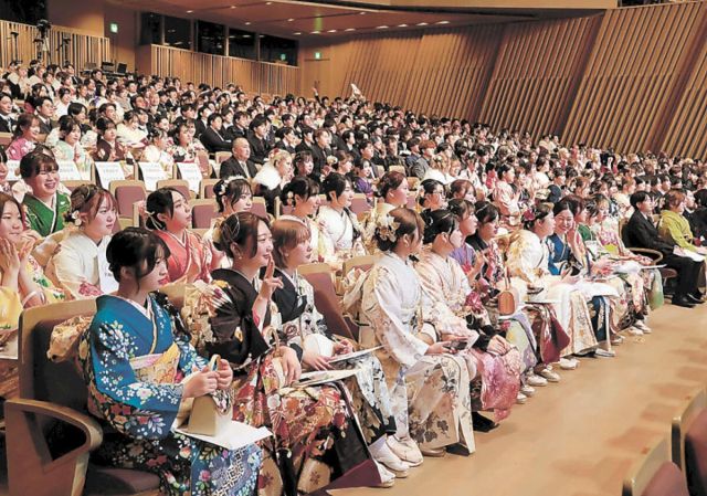 多賀城市の「成人式~二十歳を祝う会~」は市文化センターであった。対象591人中404人が振り袖やスーツ姿で出席し、大人の自覚を新たにした。 参加者を代表し、…