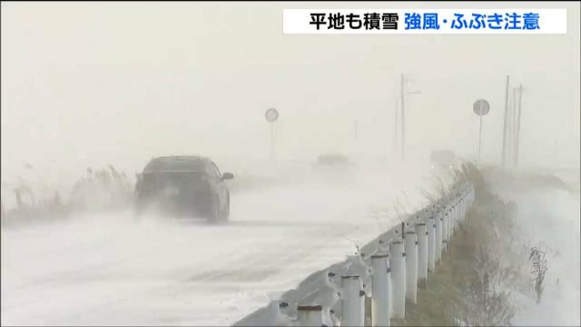 県内は強い寒気の影響で広く雪が降り、平地も積雪となりました。県内では事故や通行止めも相次いでいて、この後も強い風や吹雪に注意・警戒が必要です。昨夜からけさにか…