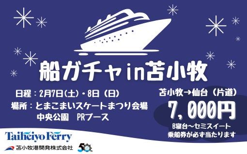 太平洋フェリー株式会社のプレスリリース(2026年1月27日 16時42分)最大80%OFF!?伝説の「船ガチャ」が北海道初上陸!7,000円で優雅な船旅が手…