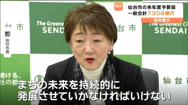 仙台市は、約7306億円の一般会計当初予算案を編成し、2月開会する市議会に提出します。第2子以降の保育料の無償化や学校給食費の完全無償化などの費用が盛り込まれ…