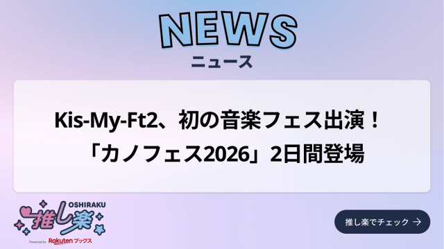 Kis-My-Ft2が、サンドウィッチマンと狩野英孝がMCを務める音楽イベント「サンドウィッチマン×狩野英孝×MUSIC カノフェス2026」に出演します。