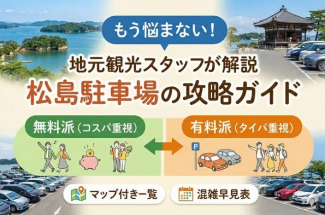 松島駐車場の攻略ガイドを現地観光スタッフが解説!無料駐車場は本当に使える?渋滞はいつ起きてる?本記事では松島エリアの無料・有料駐車場を徹底比較し、混雑しやすい…