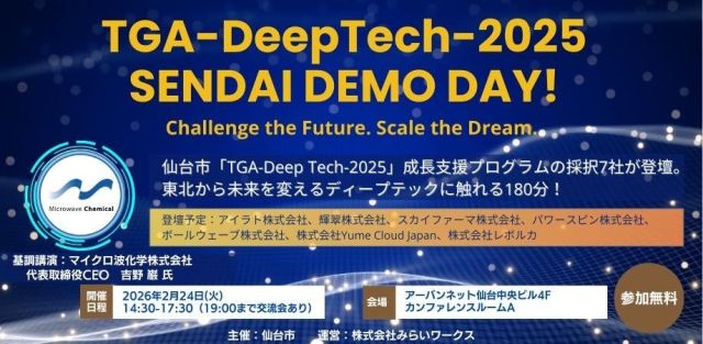 株式会社みらいワークスのプレスリリース(2026年1月30日 13時00分)【イベント告知】仙台市「TGA-DeepTech-2025」成長支援プログラム成果…
