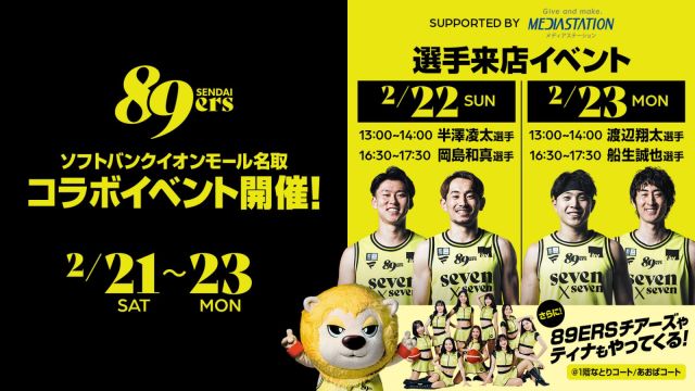 2月21日(土)~2月23日(月・祝)にソフトバンクイオンモール名取とのコラボイベントを開催!シュートチャレンジやティナ、89E