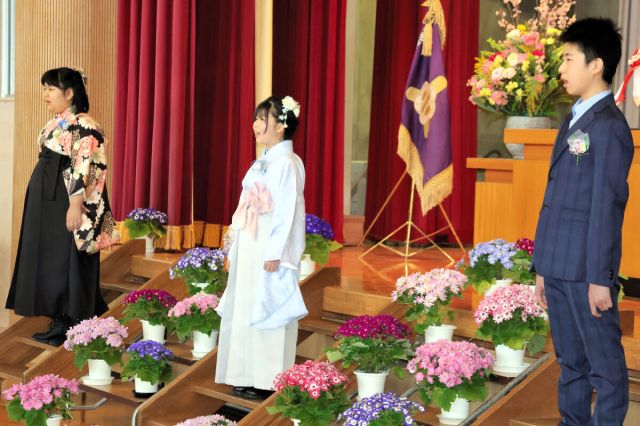 児童数の減少に伴い、4月から休校となる宮城県栗原市花山小(児童6人)の卒業式が19日、同校体育館であった。3人の卒業生が6年間の思い出を胸に学びやを巣立った…