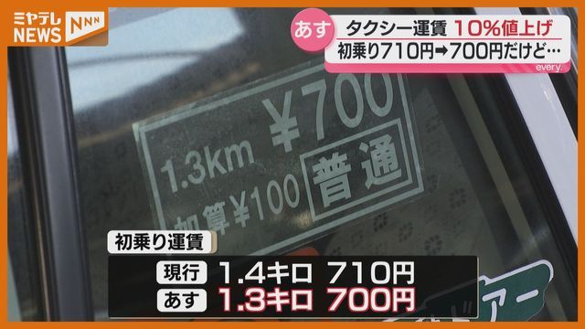人件費の上昇などで苦しい経営状況が続いている仙台市内のタクシー運賃が、3月20日から約3年ぶり値上げされました。