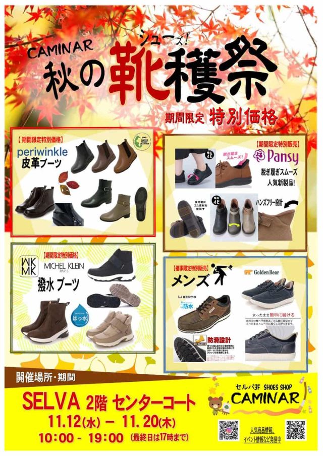 いかがお過ごしですか、nittaです。仙台市泉区泉中央のセルバ2階センターコートで、施設内3階に出店するシューズショップ『カミナル』による『靴穫祭シューかくさ…