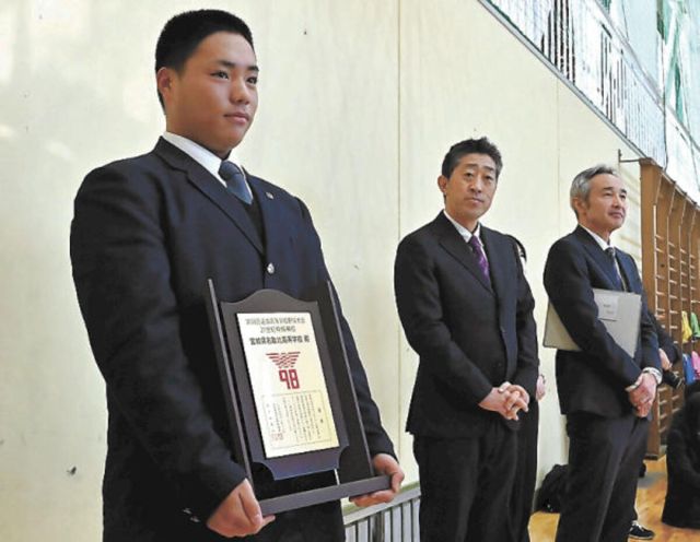 第98回選抜高校野球大会(来年3月19日開幕・甲子園)の21世紀枠東北地区候補に選ばれた名取北(名取市)の表彰式が23日、同校体育館であった。春夏を通じて初…