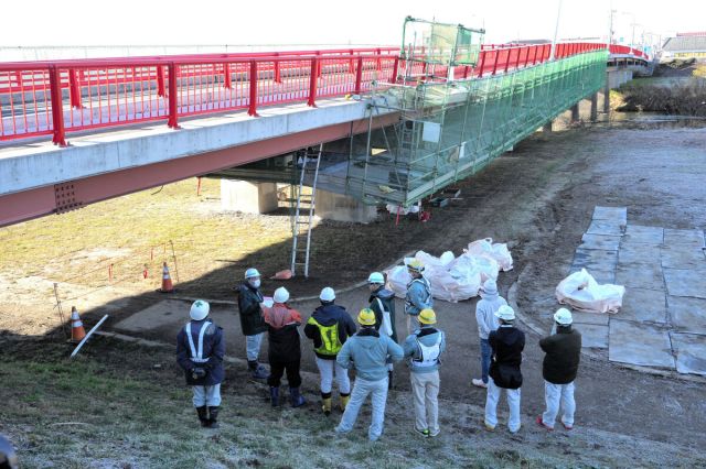 宮城県は23日、歩道部分がゆがみ、通行止めとしている涌谷町の涌谷大橋を調査した。歩道部分にひび割れを確認したが、現段階で復旧の見通しは立っていない。 県の担…