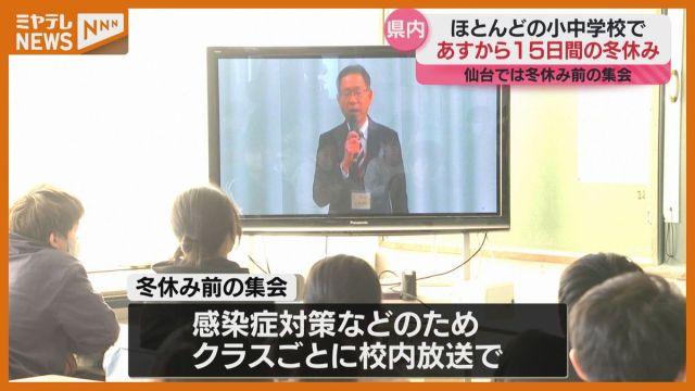 宮城県内のほとんどの小中学校では、24日から冬休みに入ります。 2学期制の仙台市内の小学校では、冬休み前の集会が開かれました。