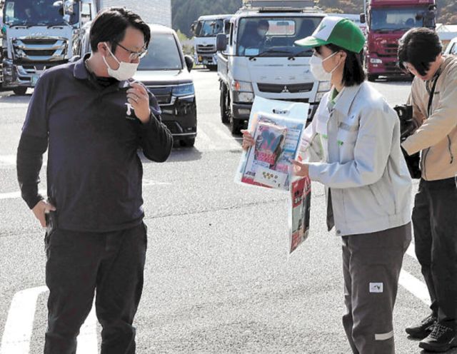 降雪シーズンを控え、冬用タイヤの早期装着やタイヤチェーンの準備を呼びかけるキャンペーンが、利府町の三陸沿岸道下り線春日パーキングエリア(PA)であった。 県…